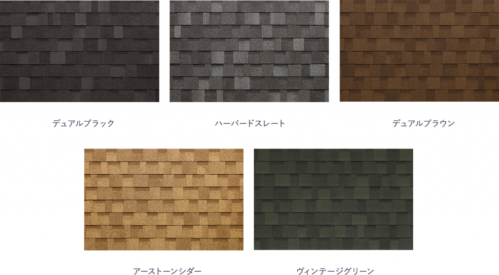 標準カラーは5色。デュアルブラック・ハーバードスレート・デュアルブラウン・アーストーンシダー・ヴィンテージグリーンからお選びいただけます。