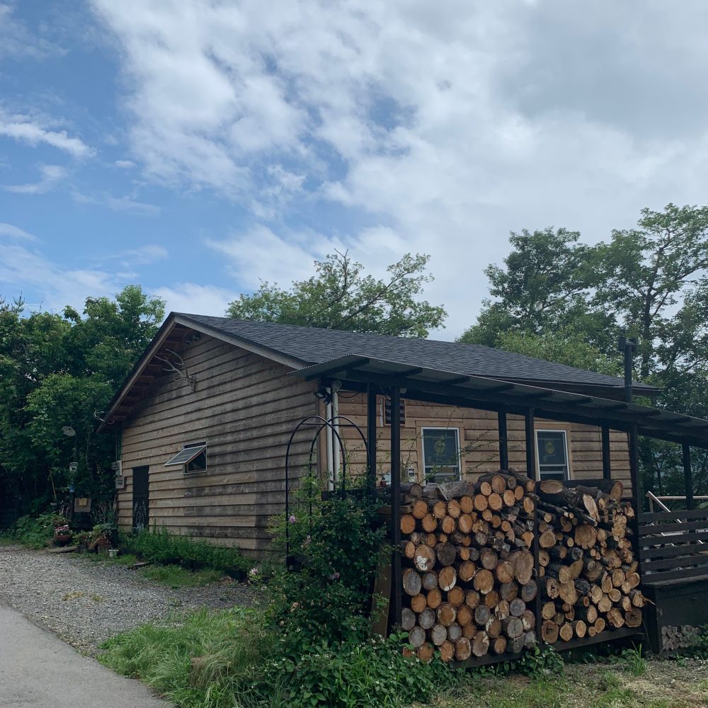その「ガレージ・プラス」を使ったカフェ・レストランを山梨の北杜市で開業なさったお客様を久しぶりに訪ねてみました。北斗市の山間の道を上った景色の良い場所にそのレストランは在ります。外に薪棚がいくつも置かれ、木造の少し枯れて味わいのある建物は、否が応でも期待が膨らむ佇まいです。