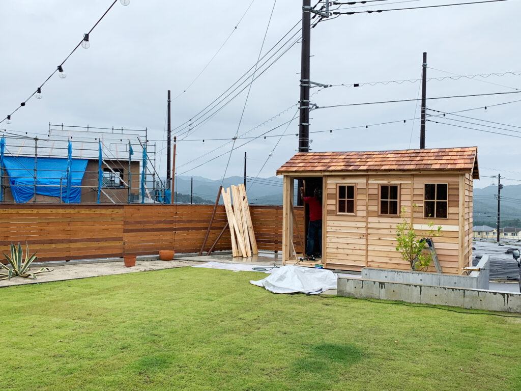 先日納品したシダーシェッドのボートハウス8×12feetモデル。ご主人がサーフボードを収納されるとのことです。広いお庭にかわいい木の小屋。憧れます。