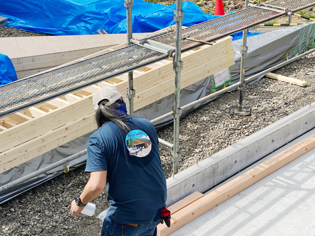 今回施工するのはシダーガレージ22×22フィートタイプ。13.6坪で車2〜3台を格納するのに丁度いい大きさのガレージです。