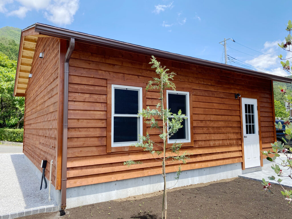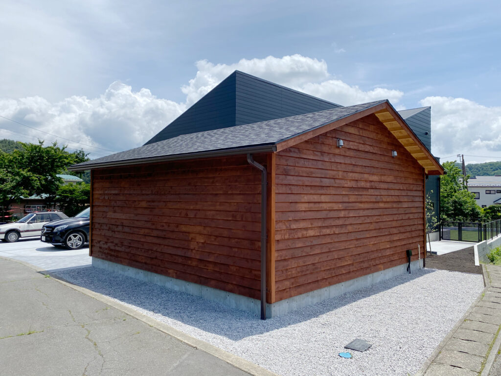 今は完成したてなので鮮やかな赤茶色の外壁ですが、時間が経つにつれて色が抜け、くすんだ深みのある色になっていきます。その経年変化を楽しむのもシダーガレージの醍醐味の一つではないでしょうか。末永くガレージライフを楽しんでくださいね。