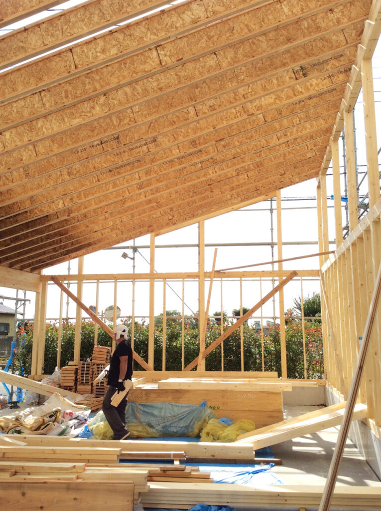 TJI®ジョイストの最大の特徴は、長いスパンをとばせるということ。これにより途中で支える梁の必要もなくコストも抑えられます。そして室内空間も最大限広く取れる為、ガランとした大空間をつくることが出来ました。