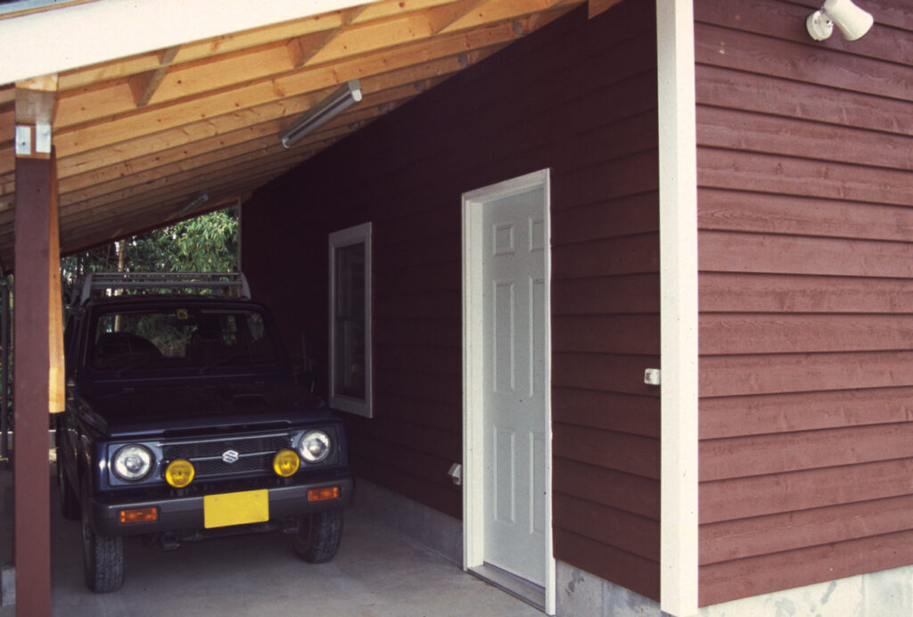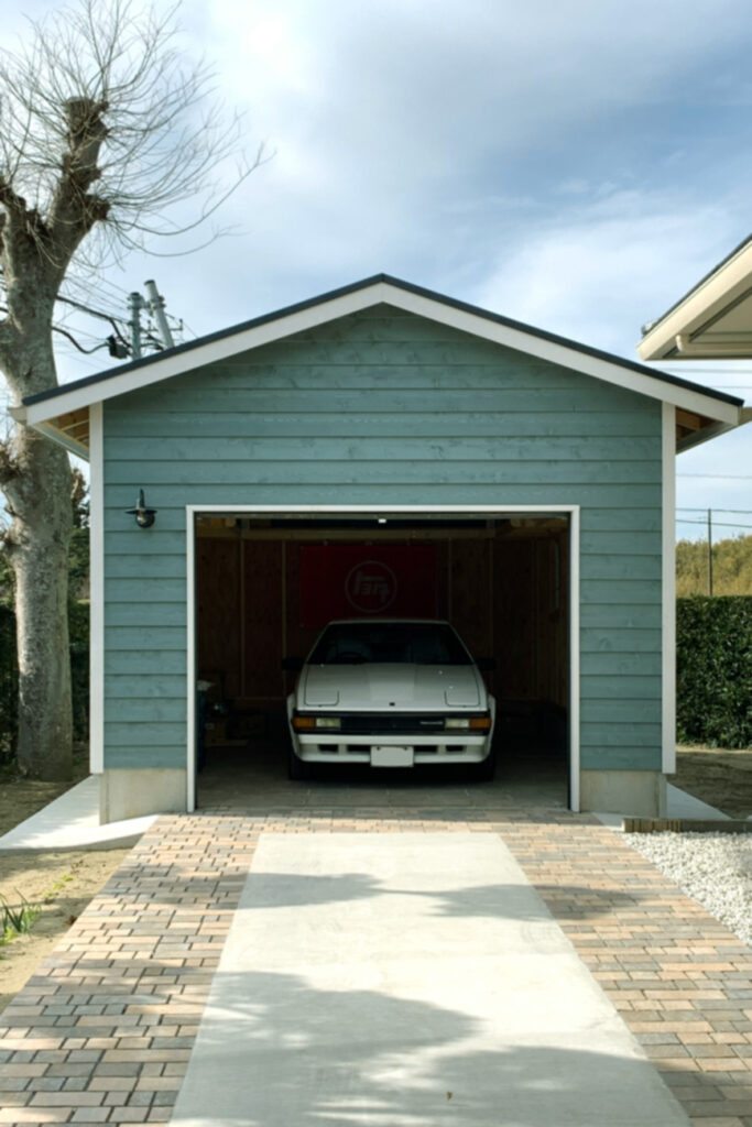 『シダーガレージ』は外観のイメージがニュートラルで、海辺や森の中、市街地など、どんな場所に設置しても不思議と周りの景観と調和します。そして、それは格納する車に対しても同じ。