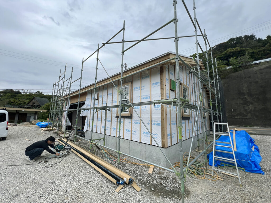 和歌山県の海のほど近く。瀬戸内海の東側の入口、紀伊水道を望む高台にガレージハウスを建てたいというご依頼です。大きさは約34坪で、今回もシダーガレージをベースとした平屋の住宅となります。