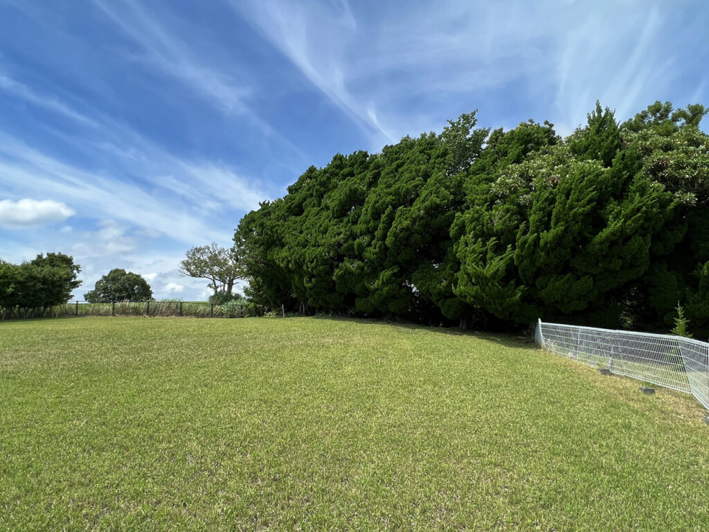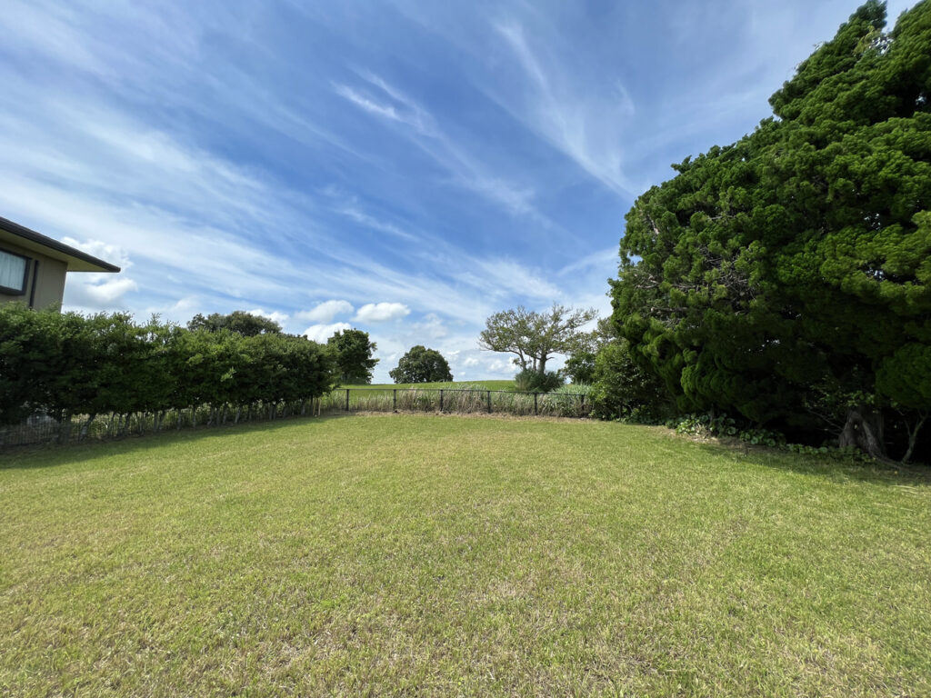 土地は約200坪の広い土地で、前面道路に向かって傾斜しています。