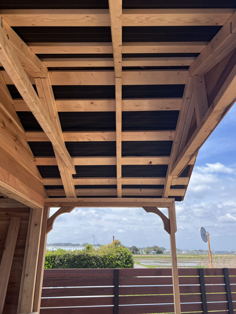シダーシェッドの基礎は、通常はウッドデッキのように土の地面にピンコロ石を設置して本体を置くだけなのですが、こちらでは一度ベタに基礎を打ち、その上にコンクリート平板を置いてから小屋を乗せる方法をとりました。そうすることで土からの湿気が上がってくるのを防げますし、水平をとりながらピンコロ石を設置する必要がないので施工も楽です。