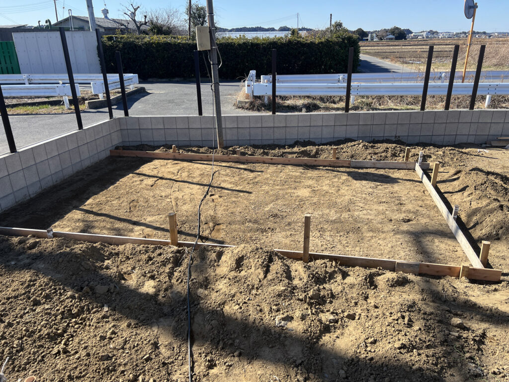 周りの土の部分は天然芝が敷かれるそう。完成が楽しみです。