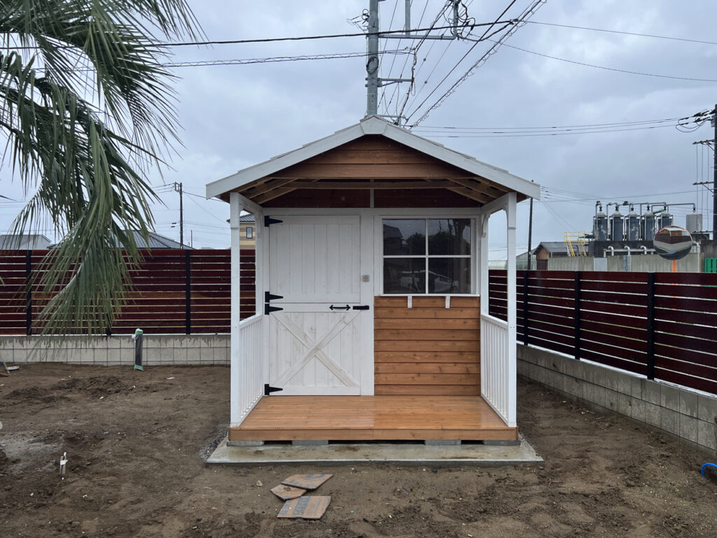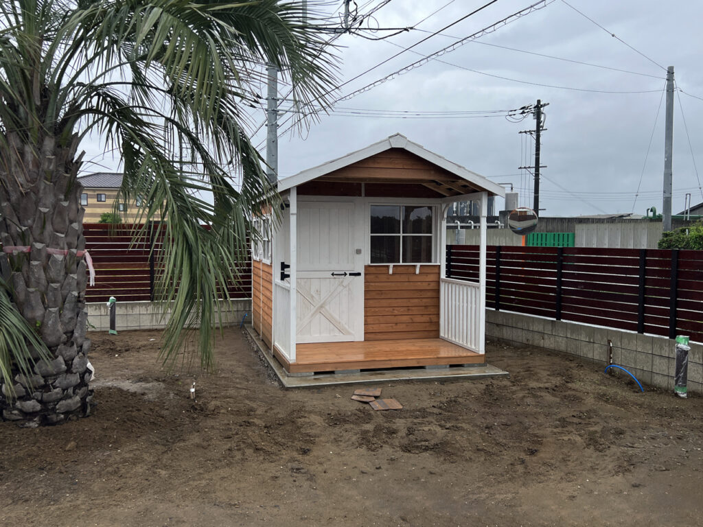 そして完成した姿がこちら。こちらのモデル「クラブハウス」はポーチ付きのモデルなので、いろいろな使い方が想像できてワクワクするデザインです。ツートンのカラーもとても可愛らしく、お庭のアクセントにバッチリではないでしょうか。