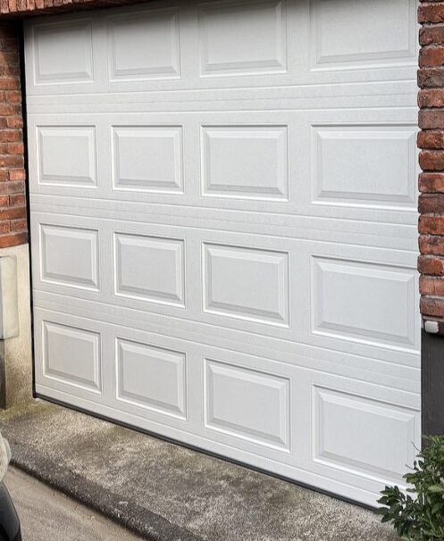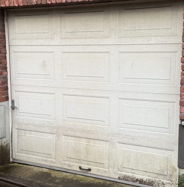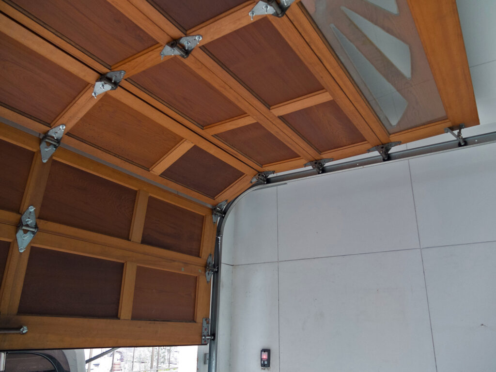 続いての事例も他社で取り付けてから20年以上が経過し、全体的に傷んできたのでドア全体を交換したいというご依頼です。また今まで手動で開閉していたが、これを期に電動オープナーを取り付けて自動で開閉出来るようにしたいとのことでした。