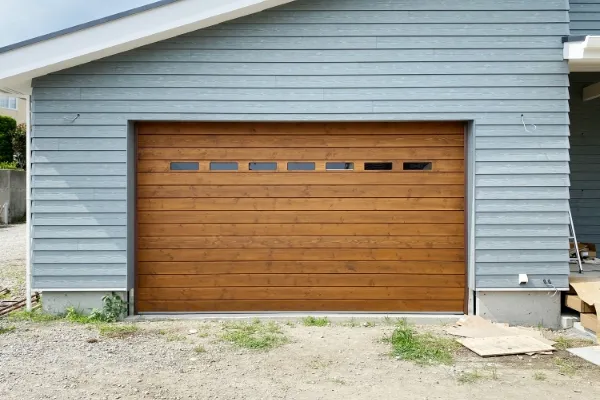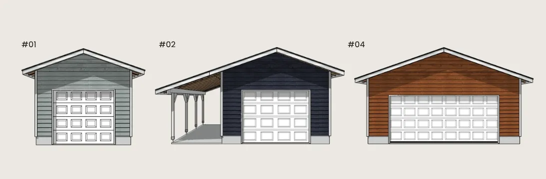 カナダ製レッドシダーを使用したツーバイフォー工法の木製キットガレージ。 壁パネルは工場加工済みで、セルフビルドに適しています。