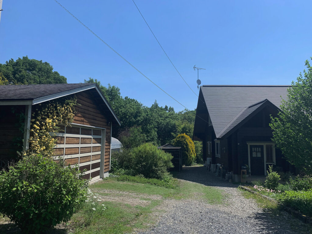 山間に溶け込み、ツタが彩る外観。数年かけて美しく育ったぬくもりある木工所