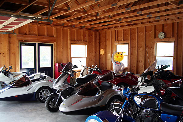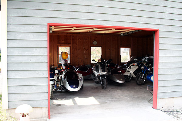 オリジナルサイドカーのメーカーで、よそにない独自の路線のサイドカーを追求されています。小型スクーターに装着可能なものから大型まで、こだわりの逸品カーを創ります。ガレージは26×24タイプ(間口7.925m×奥行き7.315m)をベースに、ガレージドアを小型の9フィートサイズに変更し、軒側にはピーチトゥリー社のダブルドアを付けました。 2000年の春に施工したガレージです。