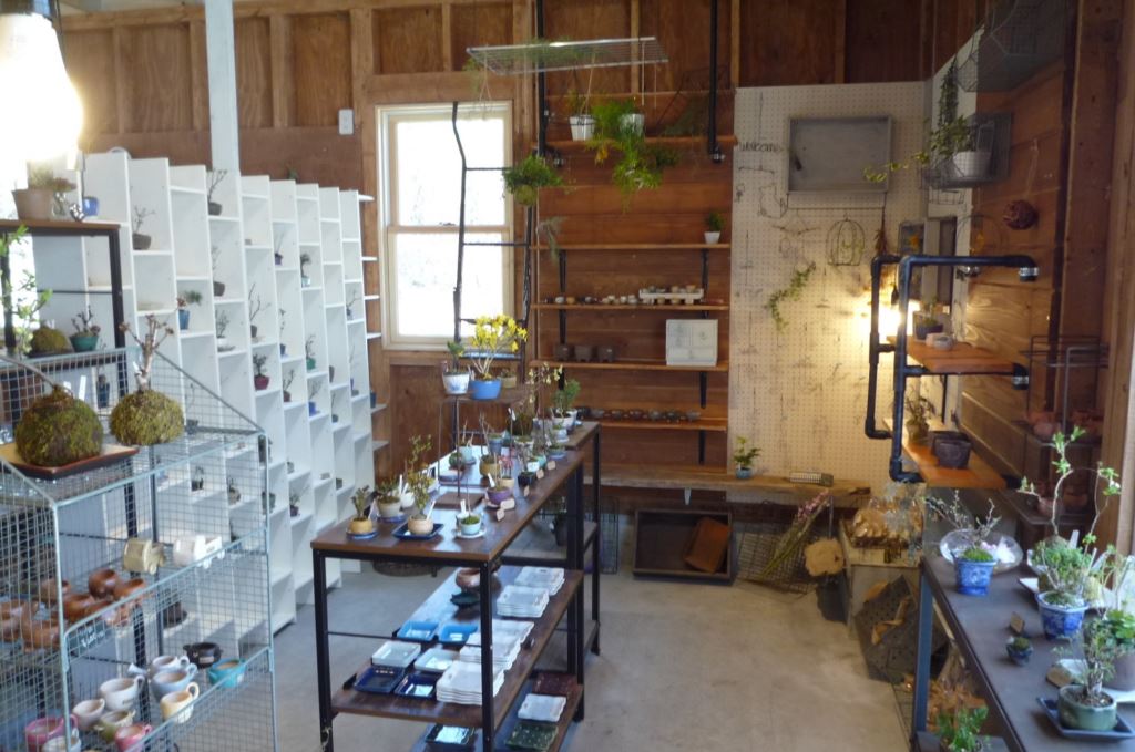 こちらのお店では小さな盆栽や苔玉の販売、また、それを作る体験教室を開いています。