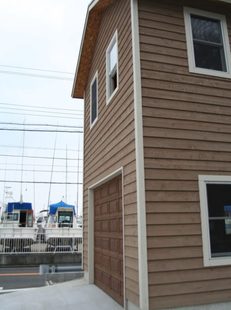 1階は工房、2階は22畳の大空間LDK。マリーナに面した2階建てガレージ。
