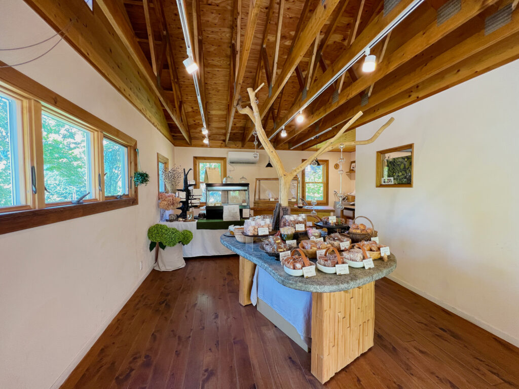 多雪地域ならではの力強い構造と、木の温もりあふれる洋菓子店