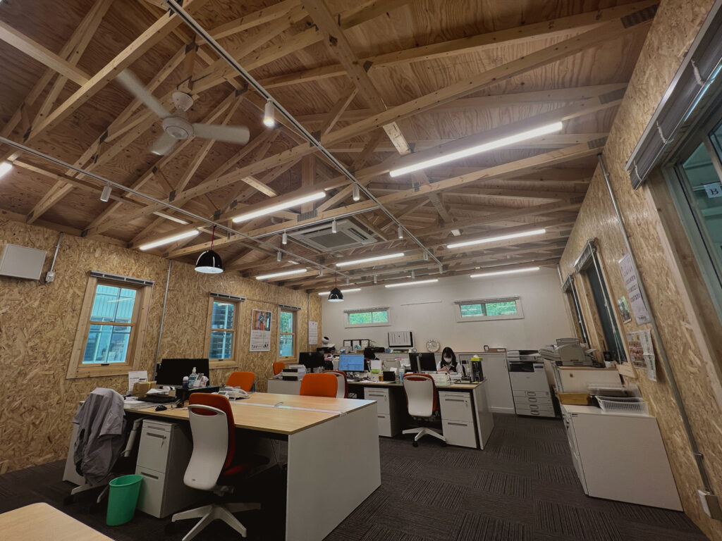 開放的な木組み空間と、機能性・デザイン性を兼ね備えたインガレージオフィス