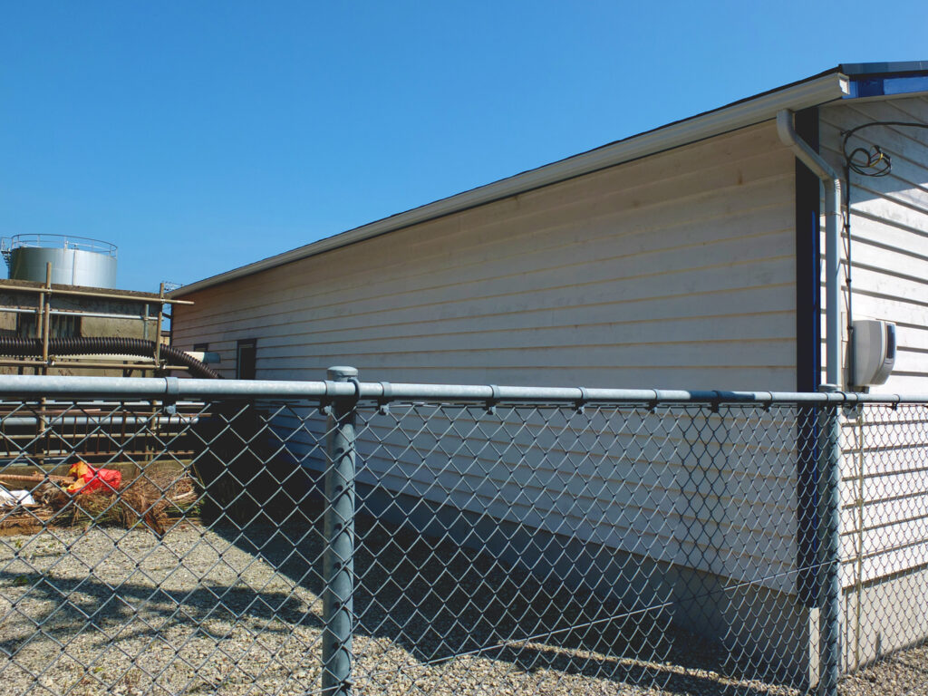 白とブルーが爽やかな、ロフト付きの大空間アメリカンガレージ