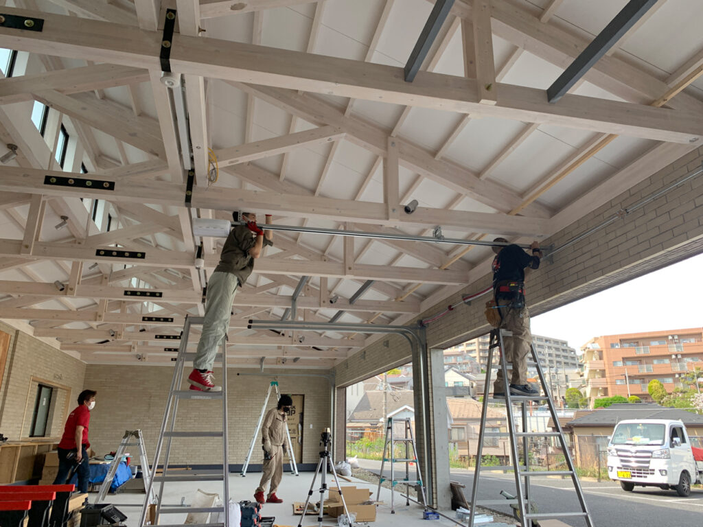 圧巻の「幅15m」大型ガレージに2台並んだ在来工法の木製シャッター。