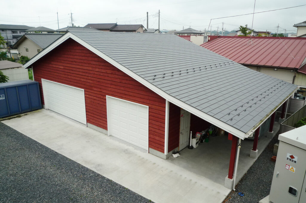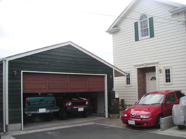 大切なコレクションを一堂に。大型車5台とバイクを余裕で守る、2連ドアの大型ガレージ