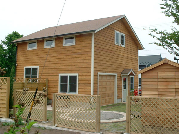 +55cmの高い壁でロフトを実現。ナチュラルな単色塗装が映えるシダーガレージ