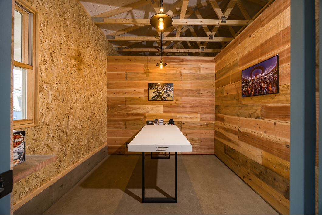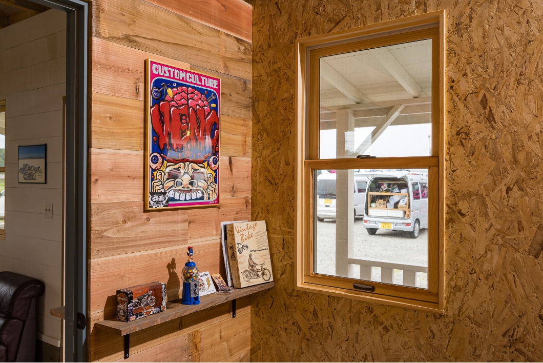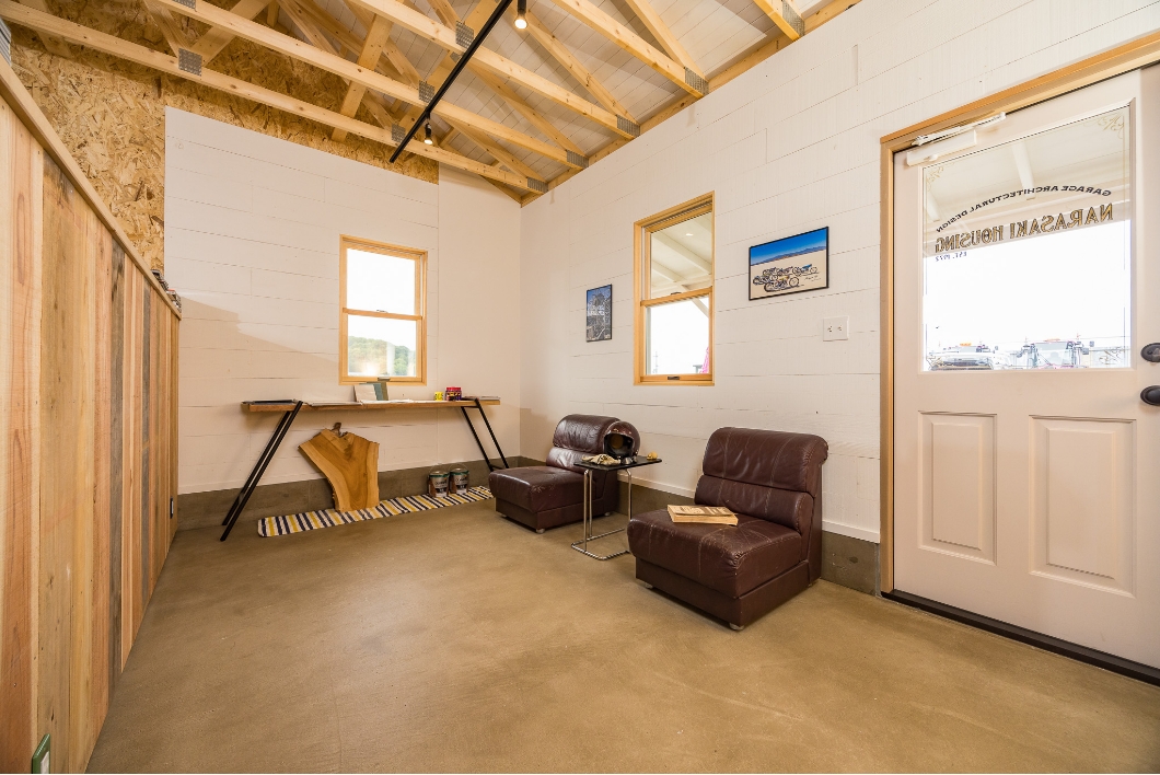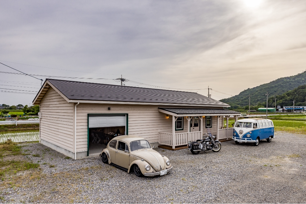 滋賀県彦根市に完成したガレージです。ホワイトの外壁に緑のトリム、また背面のウォールペイントも相まってぬくもりのある外装に。またアメリカらしさを演出するカバードポーチも素敵です。内装も遊び心があり、お手本にしたくなるアイデアが満載です。こちらはシダーガレージの販売店である株式会社楢崎住宅の展示場として建てられたガレージですので、興味をお持ちの方はぜひ一度足を運んでみて下さい(要予約)。楢崎住宅のYoutubeでは主にガレージを取り上げていて、実際にガレージを建てられたオーナーに取材していたり、内装や外装を細かく紹介してくれているので、これからガレージを検討している方にはとてもオススメです。ぜひ見てみて下さい。