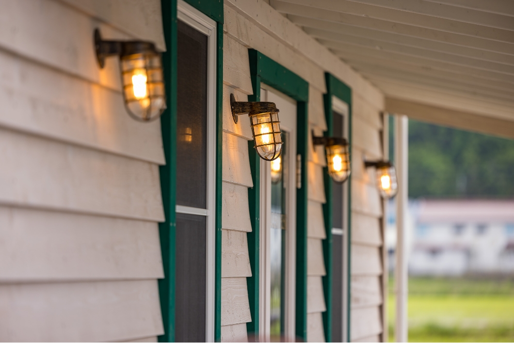 アメリカらしさを演出するカバードポーチが素敵なシダーガレージ