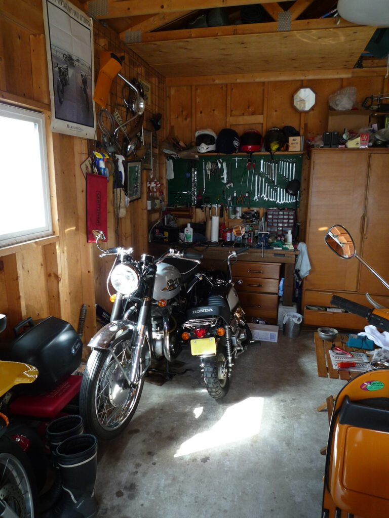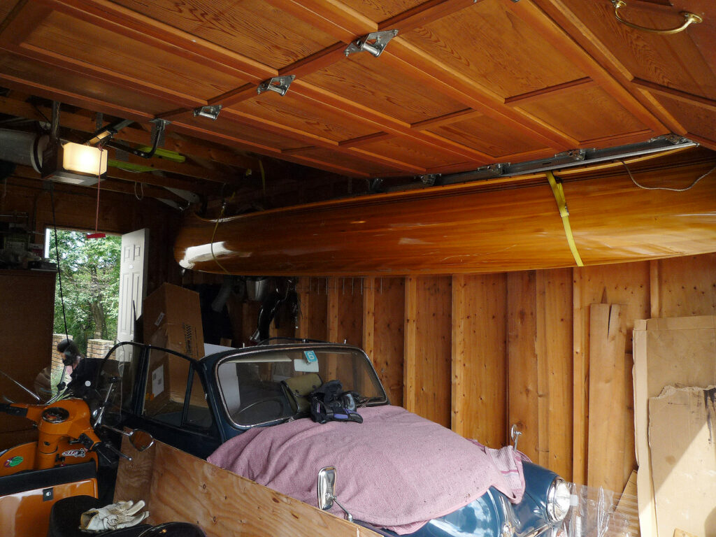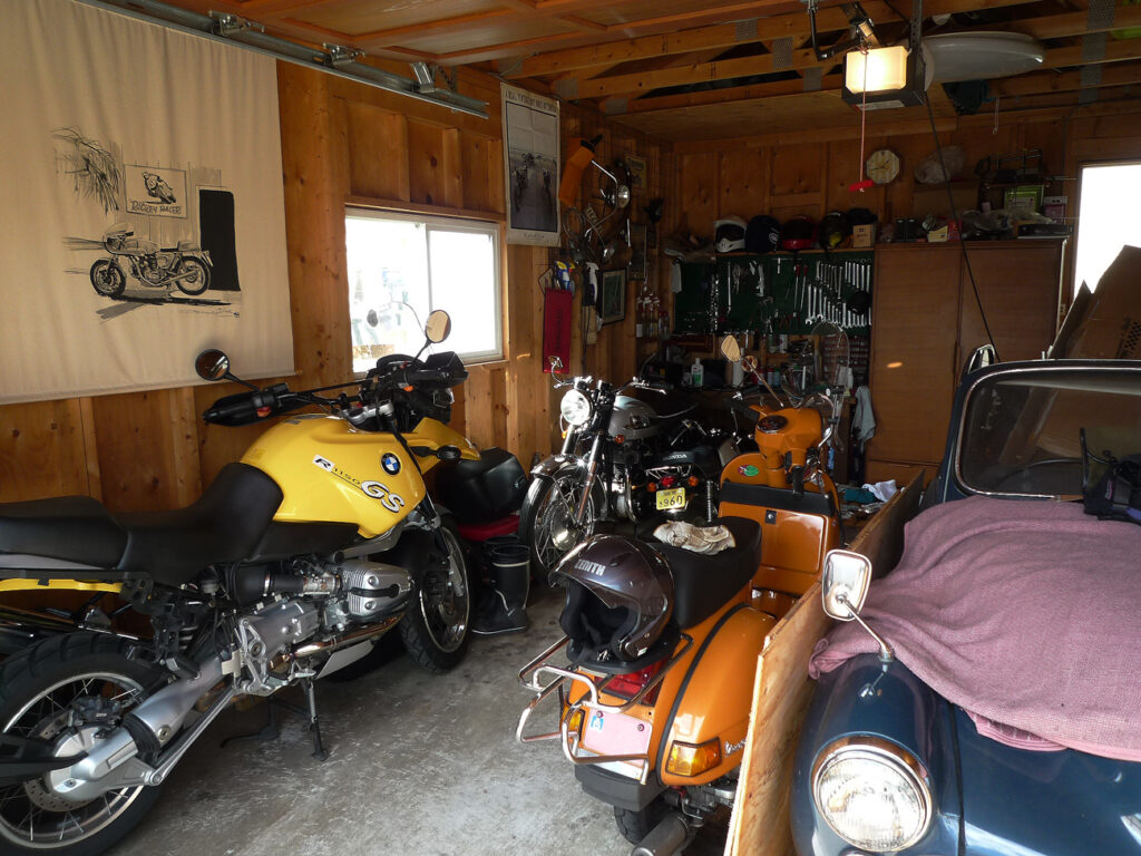 1996年完成。鮮やかなブルーで縁取られた外観が印象的なガレージ。中には車やバイク、更には木製ボートが所狭しと格納してあります。乗り物好きな仲間たちが集まる秘密基地になっているんだとか。