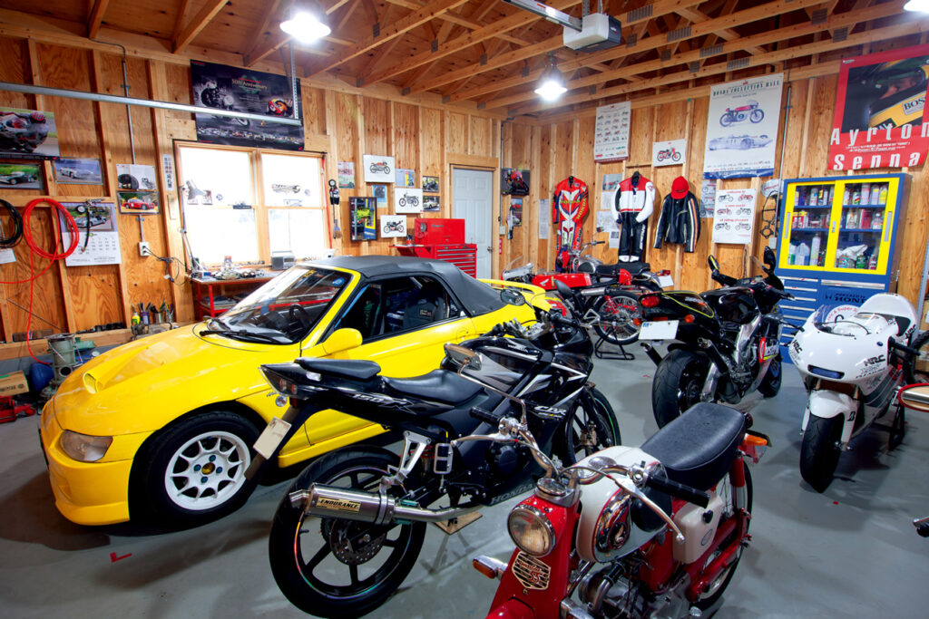 メンテナンスが捗る大空間。愛車とバイク8台が収まる、機能美ガレージ