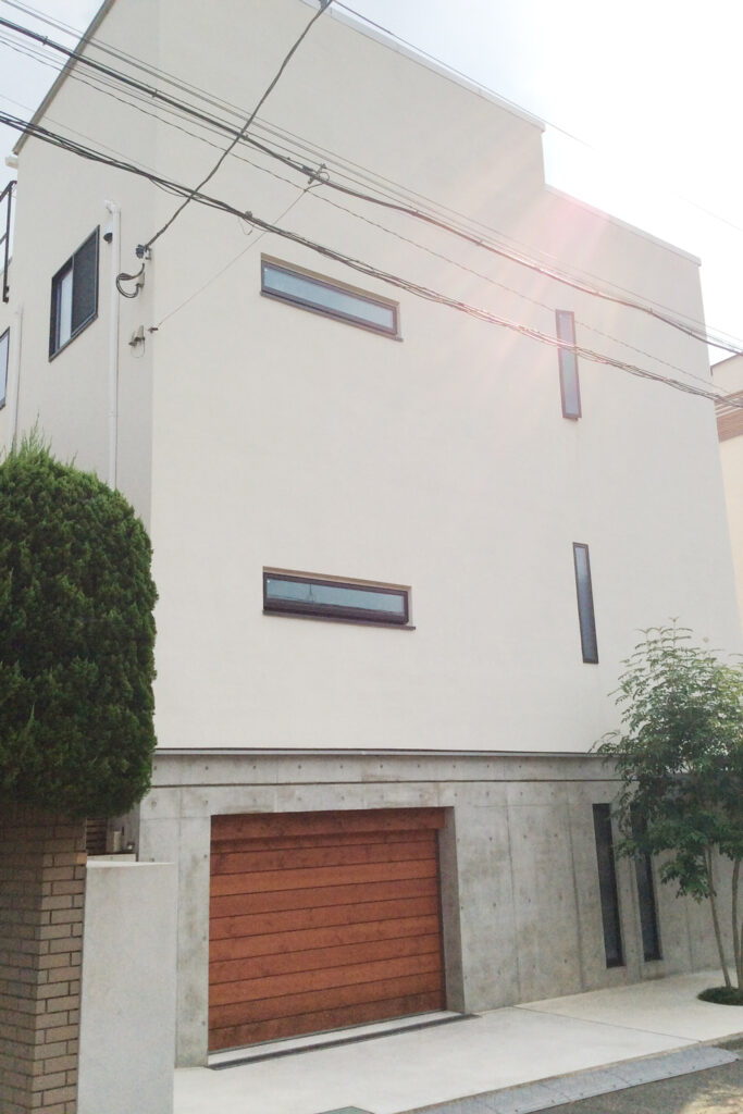 外壁と調和する木の質感。都心の新築住宅をいろどる、上質なガレージ