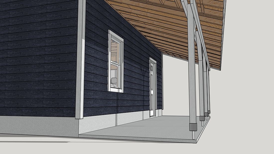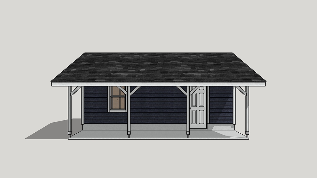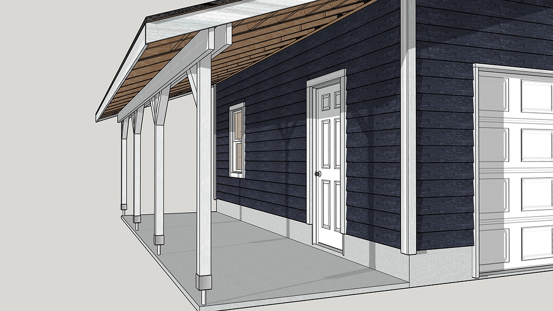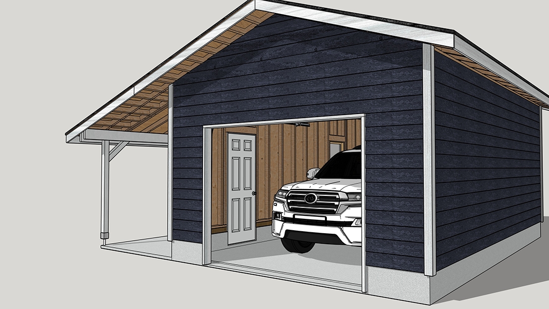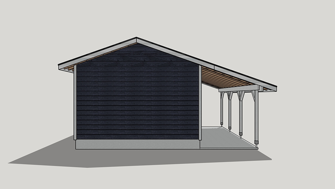 1台用のガレージの屋根を延長したプラン